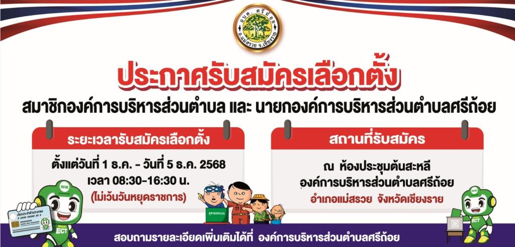 ประชาสัมพันธ์ รับสมัครเลือกตั้งสมาชิกสภาองค์การบริหารส่วนตำบล และนายกองค์การบริหารส่วนตำบลศรีถ้อย...