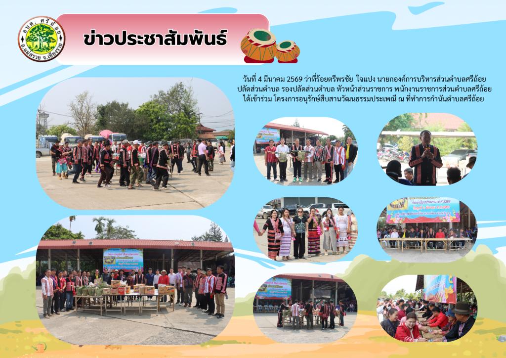 | 8 | (ประกาศรายชื่อผู้ชนะการเสนอราคา / ประกาศผู้ได้รับการคัดเลือก) จ้างเหมาบริการรถรับ - ส่ง เด็กนักเรียนศูนย์พัฒนาเด็กเล็กบ้านแม่ยางมิ้น สังกัดองค์การบริหารส่วนตำบลศรีถ้อย สายที่ ๑ จำนวน ๑ คัน ประจำเดือนเมษายน พ.ศ. ๒๕๖๙ โดยวิธีเฉพาะเจาะจง | คลิกอ่าน.. | 30/3/2569 |